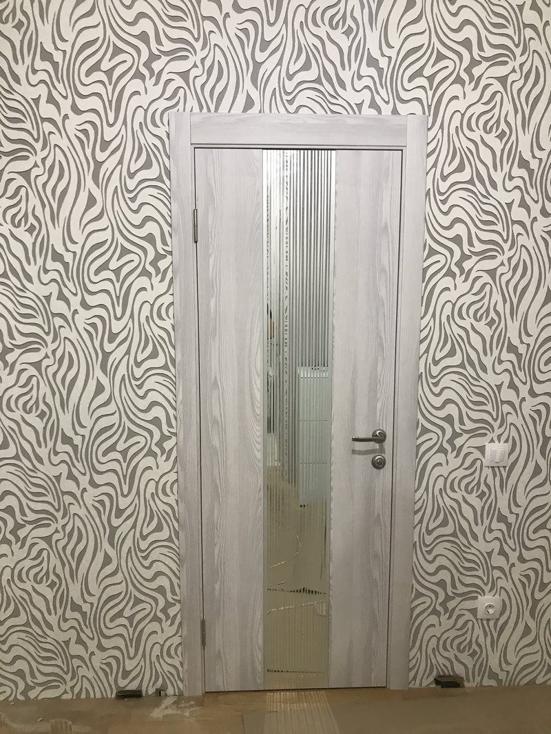 Дверь ПО EXZ 6E Клен айс стекло зеркало с рисунком из Экошпона COVERFLEX (Двери Нева) в с установкой и доставкой
